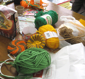 2013年最初の集まりではアクリルたわしを作ります 2月14日13:00から @デポーコミュニティースペース 8号または10号の棒針、あれば並太アクリル毛糸(2色で編むときれいです)のご用意を |