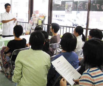 3days2日目は石けん王子が教える石けんの使い方、合成洗剤の危険性を知る学習会。石けん使いこなしのこつをわかりやすく丁寧に教えてくださいました。王子は話が上手! フロアーでは王隠堂さんが梅や柿のギフトを試食説明。 お肉の棚の前でワーカーズの牛ステーキオーダーカット。 用途に応じて切り分けてもらえるので人気です。 魚コーナーには漬け魚の泰山からおなじみ古賀さん。 無添加明太子と無添加漬け魚を紹介。 「子供に食べさせられないものは作らない」と。 午後は八ヶ岳野菜クラブさんが来所。 |
