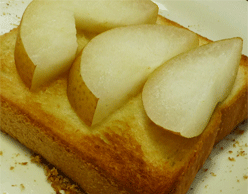 ![]() 噂の『梨トースト』 バターを塗ったトーストに皮ごと厚切りにした梨を載せ、 再び2〜3分トースト。甘さを増した梨の食感が楽しい。 |